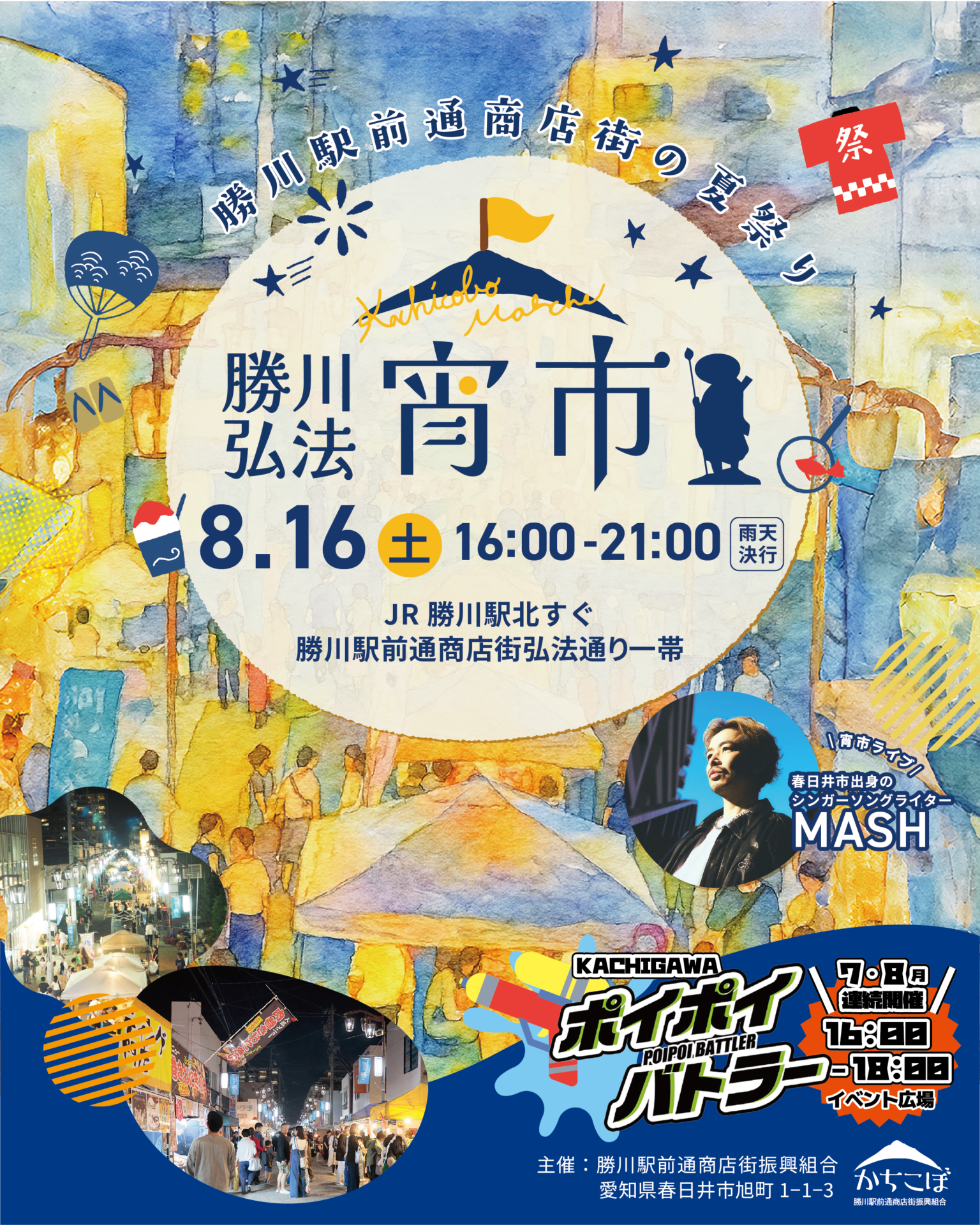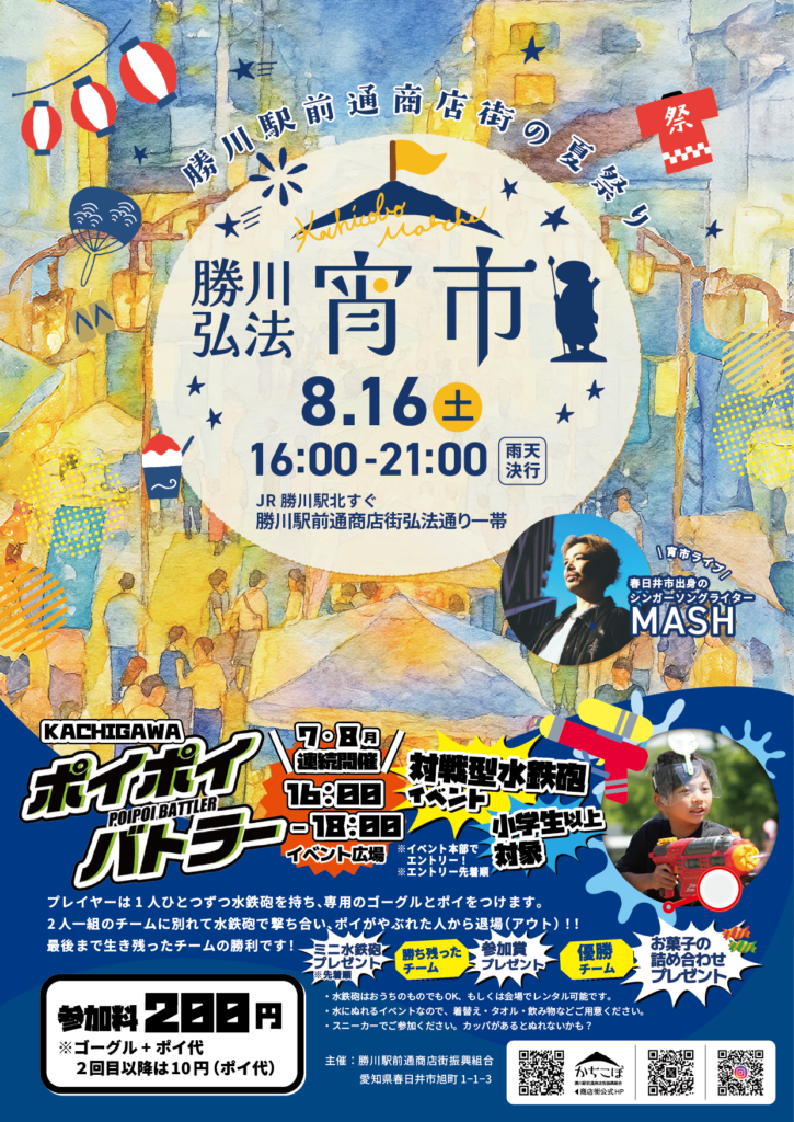 8月第3土曜、勝川弘法宵市のお知らせです!